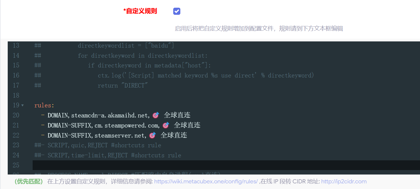 - DOMAIN-SUFFIX,steamserver.net,🎯 全球直连注意 yaml 的缩进格式,结果是:
