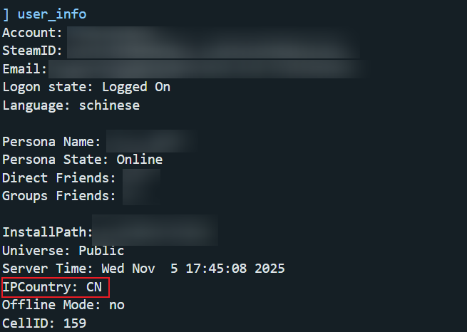 那就让 Steam 以为我们在国内就好了,先开 Steam 控制台看看我们目前的地区。